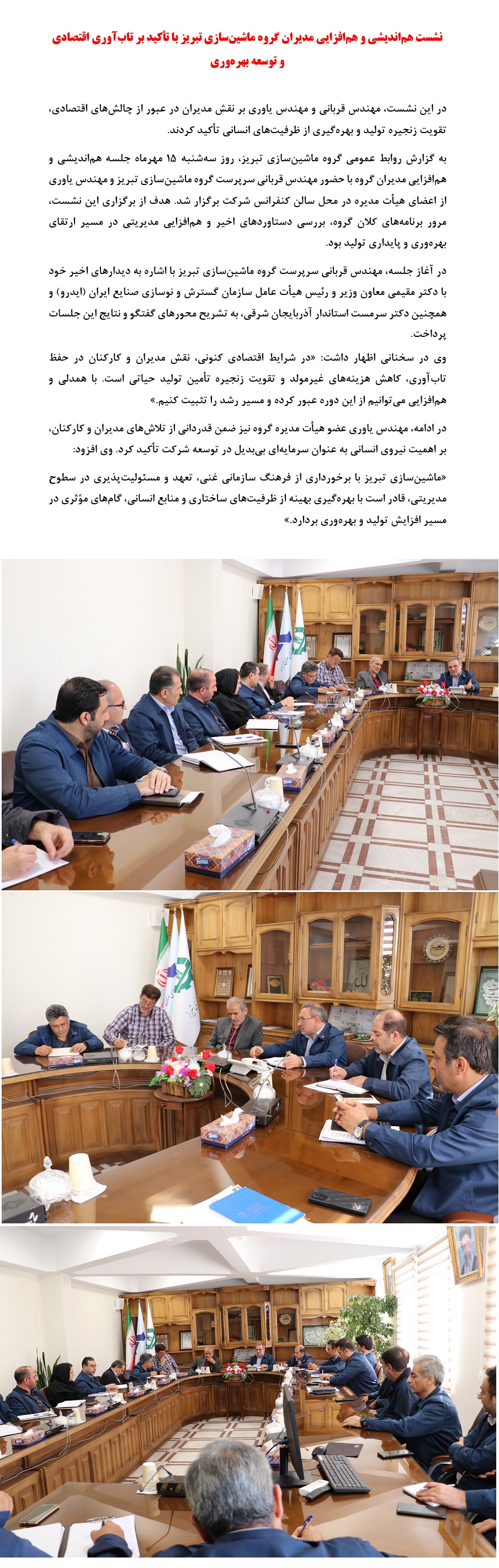 نشست هماندیشی و همافزایی مدیران گروه ماشینسازی تبریز با تأکید بر تابآوری اقتصادی و توسعه بهرهوری