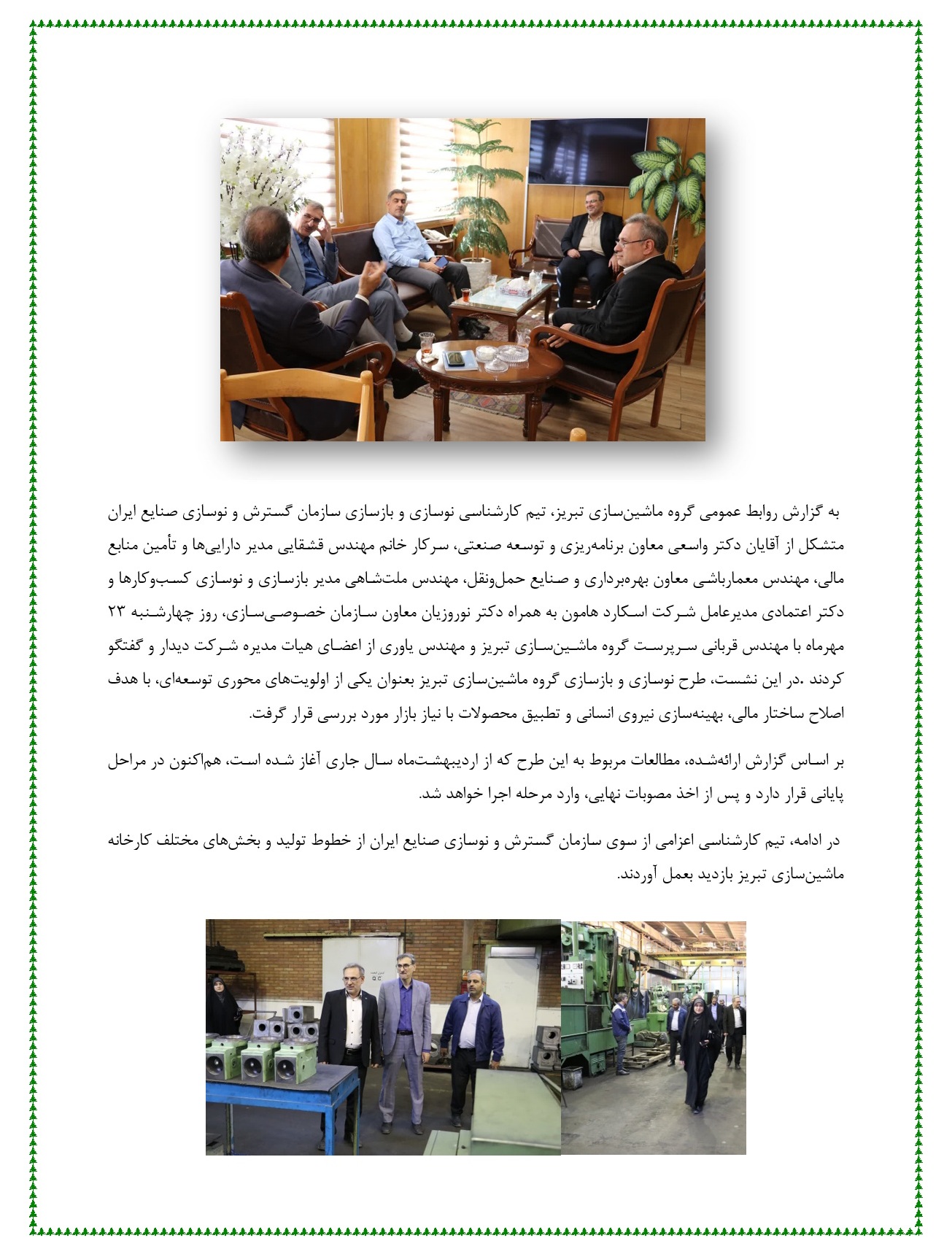 بازدید تیم کارشناسی سازمان گسترش و نوسازی صنایع ایران از طرح نوسازی و بازسازی گروه ماشین‌سازی تبریز