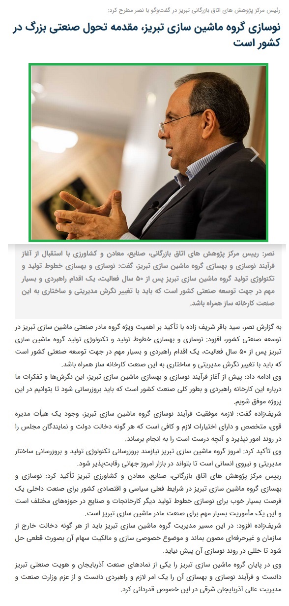 نوسازی گروه ماشین سازی تبریز ، مقدمه تحول صنعتی بزرگ در کشور است.