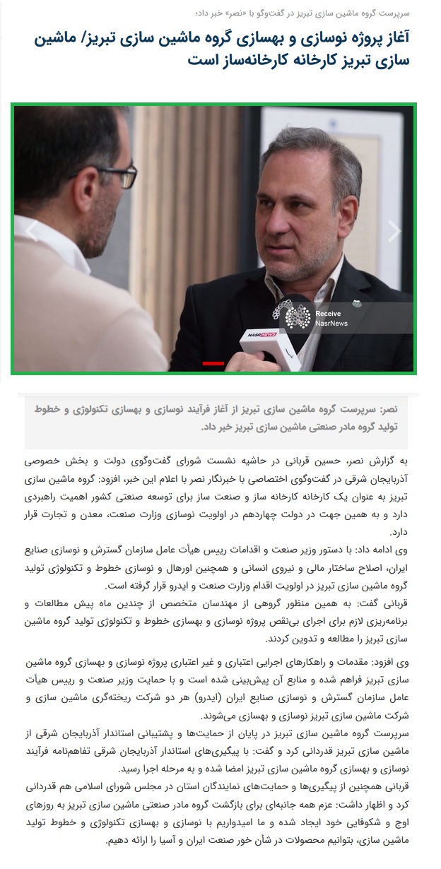 آغاز پروژه نوسازی و بهسازی گروه ماشین سازی تبریز / ماشین سازی تبریز ، کارخانه کارخانه ساز است.