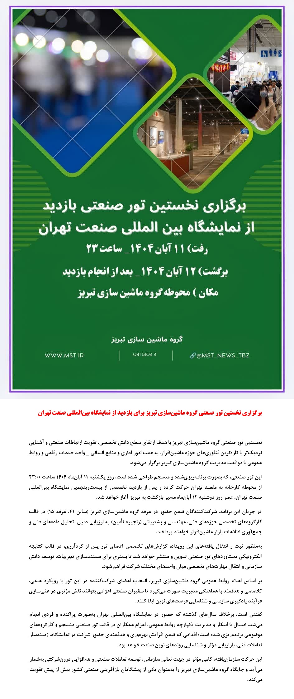 برگزاری نخستین تور صنعتی گروه ماشینسازی تبریز برای بازدید از نمایشگاه بینالمللی صنعت تهران