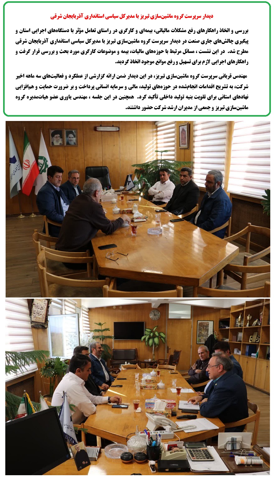 دیدار سرپرست گروه ماشینسازی تبریز با مدیرکل سیاسی استانداری آذربایجان شرقی