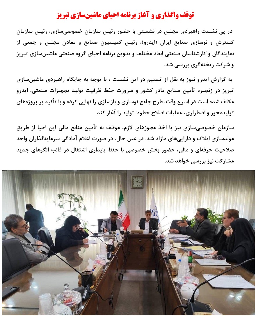 توقف واگذاری و آغاز برنامه احیای ماشین‌ سازی تبریز