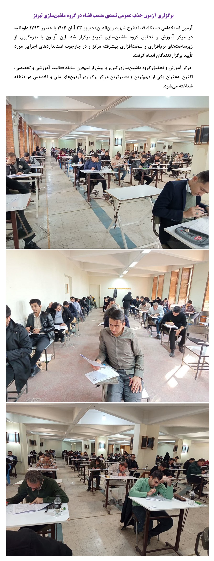 برگزاری آزمون جذب عمومی تصدی منصب قضاء در گروه ماشین‌سازی تبریز
