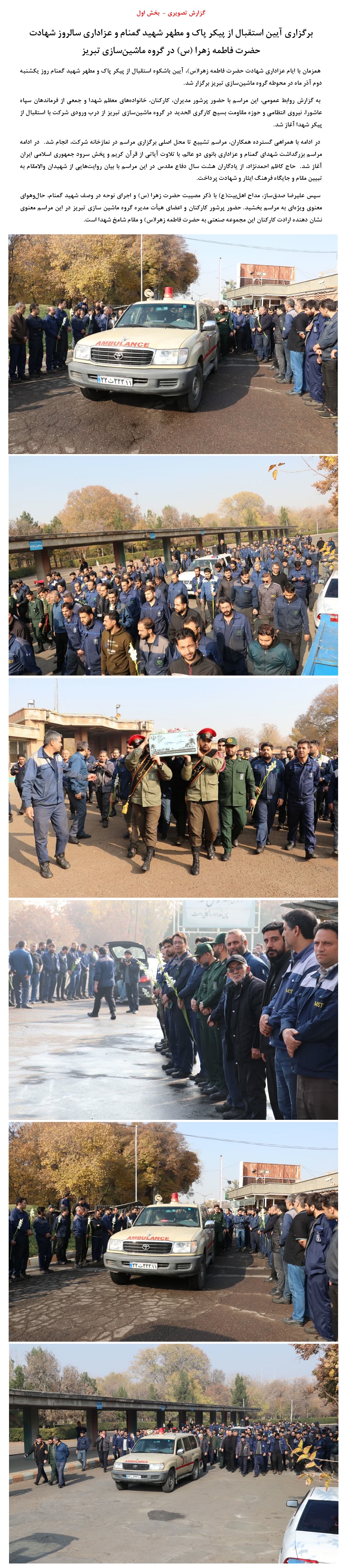 برگزاری آیین استقبال از پیکر پاک و مطهر شهید گمنام و عزاداری سالروز شهادت حضرت فاطمه زهرا (س) در گروه ماشینسازی تبریز